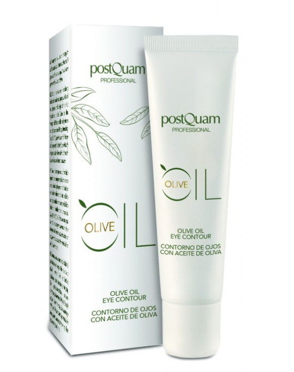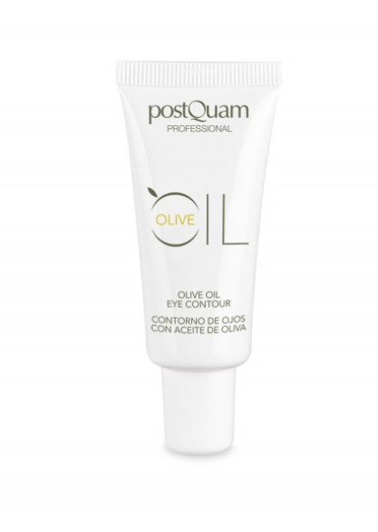 • Frasco e caixa branca de creme postQuam Professional Olive Oil Eye Contour