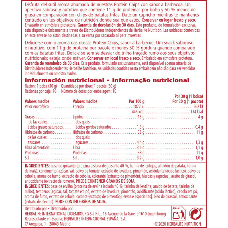 • Protein Chips sabor a Barbecue contém 11 g de proteína